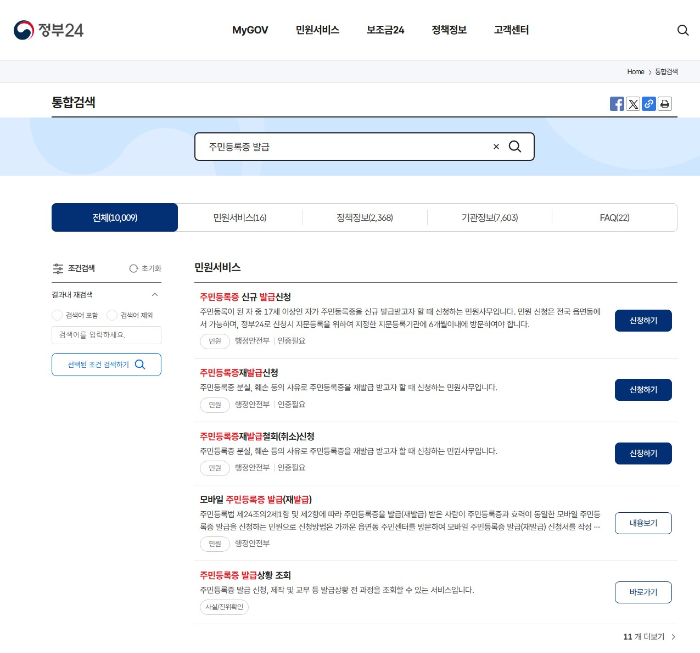 2. 검색창에 “IC 주민등록증 발급” 입력
